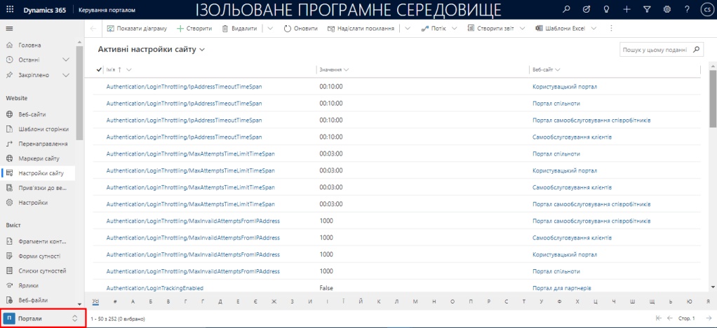 З типами порталів розібралися, можливо в наступних статтях розберемо інші типи порталів, а поки давайте подивимося, як можна адмініструвати створений нами портал, для цього необхідно виділити його та натиснути “Налаштування”.