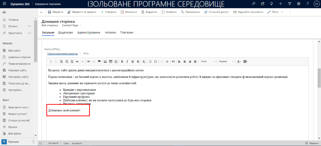 Поки створюється портал поговоримо про особливості створення порталів, оскільки ми вже розбирали, що таке середовище, то важливо розуміти, що дані, які ми можемо вивести на портал або зібрати і записати, обмежені базою даних того самого середовища, яке ми створили. Перекладаючи доступною мовою, якщо ми маємо таку “сутність/таблицю” (запам’ятайте це слово, воно нам часто буде зустрічатися) або елемент бази даних, як “Контакт” – звичайний такий контакт, як, наприклад, у вашому телефоні записані друзі, родичі, з відповідними полями: ПІБ, номер телефону, компанія, день народження, електронна пошта і т.д. Тоді, всередині вами створеного середовища всі сутності та записи доступні для порталу та додатків, тобто ви можете вивести “Контакти” своєї компанії на портал, або записати в “Контакти” людину, яка залишила свої дані на порталі, у заявці, наприклад. Отже портал створився…