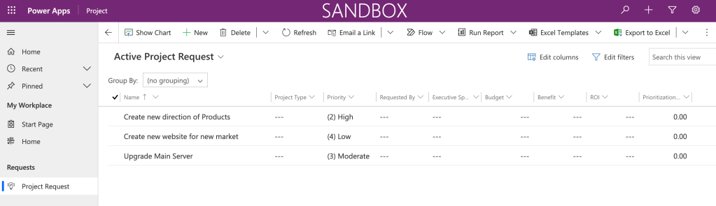 Для прикладу візьмемо сьогодні середовище в PowerApps, в якому вже розгорнутий Project Accelerator (завантажити рішення можна за посиланням https://github.com/OfficeDev/Project-Accelerator).