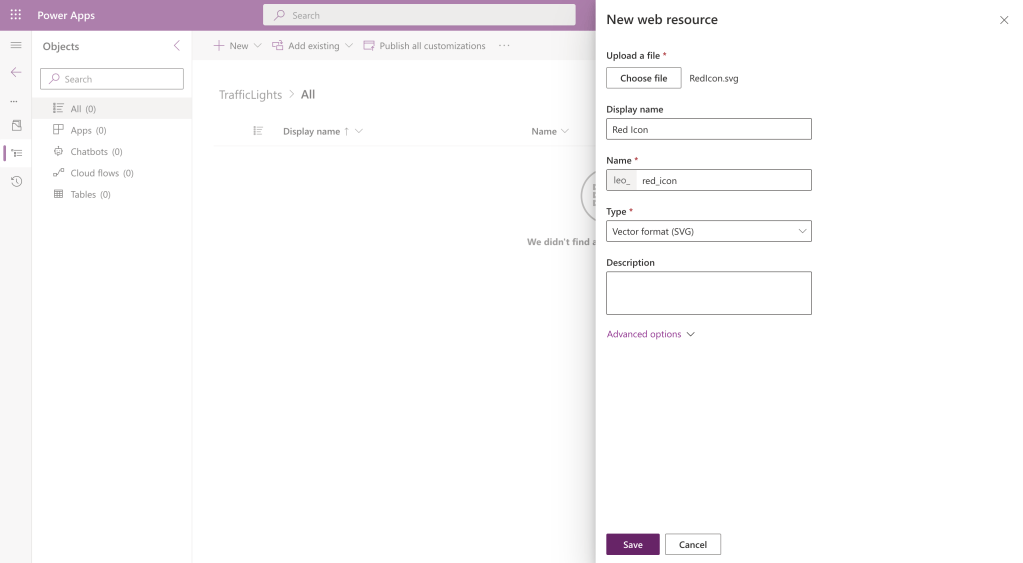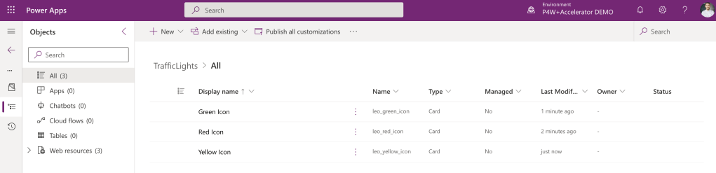 Переходимо за адресою make.powerapps.com, я попередньо створив Рішення (Solution), всередині свого рішення чи в рішенні за замовчанням, створюємо веб-ресурс та додаємо попередньо завантажені іконки.