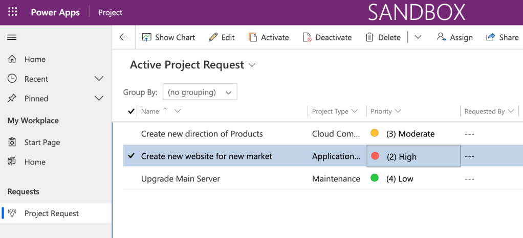 Відкриваємо в тому ж класичному інтерфейсі, Подання в моєму випадку Active Project Request. В класичному інтерфейсі, час відповіді, часто буває довгим – тому, періодично ви зможете ходити і робити собі каву ☕️ 🤦🏻♂️.