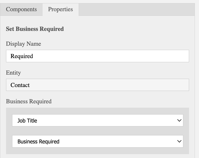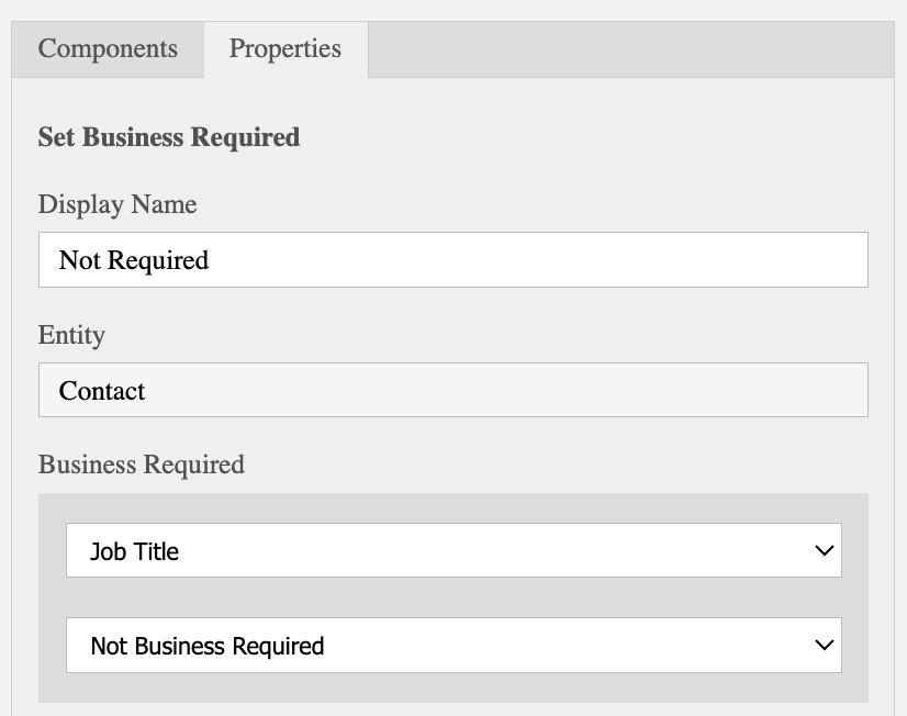 Обираємо дію з типом “Встановити вимоги до поля” (Set Business Required) та задаємо поле та тип вимоги.