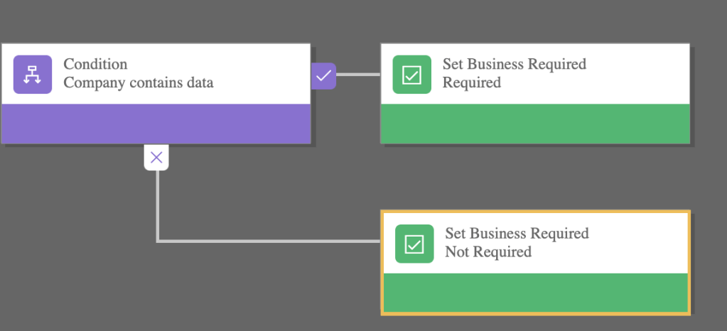 Задаємо, ще одну дію до умови, у гілку коли умова не виконується (для передбачення сценарію, якщо користувач очистив поле Компанія, щоб знялась вимога до поля).