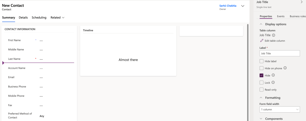 Важливо розуміти, що бізнес правила будуть застосовані виключно до полів в обраній вами таблиці, тобто якщо ми хочемо, щоб при оновленні даних в таблиці Контакти, оновились якісь дані в таблиці Компанії, то бізнес правила нам тут не допоможуть, для цього нам потрібні або Workflow або PowerAutomate Flow (але це вже, звісно, зовсім інша історія).