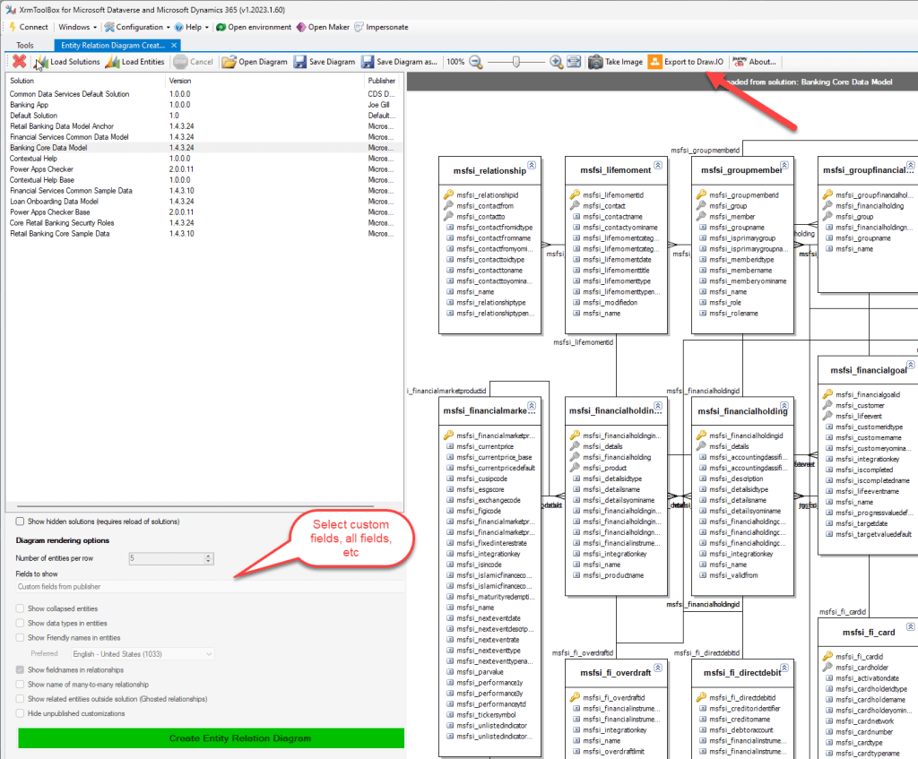 - XRMToolBox – тут є гарний плагін, який дозволяє згенерувати ERD та потім піти поправити її в Draw.io (щоб не бути залежним від ліцензії MS Visio).