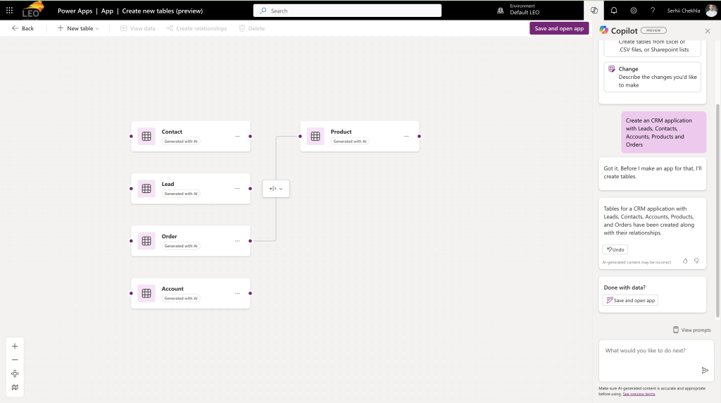 Всім привіт, в даній статті я хотів би показати одне з останніх оновлень від Microsoft (в червні 2024 року), це можливість працювати в оновленому конструкторі додатків (make.powerapps.com) з даними у вигляді ERD з допомогою Copilot.