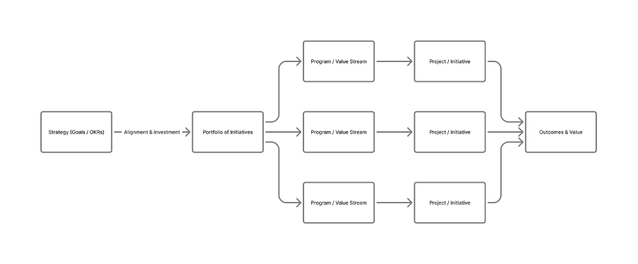 - Strategic alignment — initiatives must originate from strategic themes or OKRs.