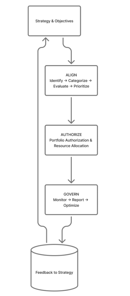 | Align | Ensure strategic alignment | Identify → Categorize → Evaluate → Prioritize |